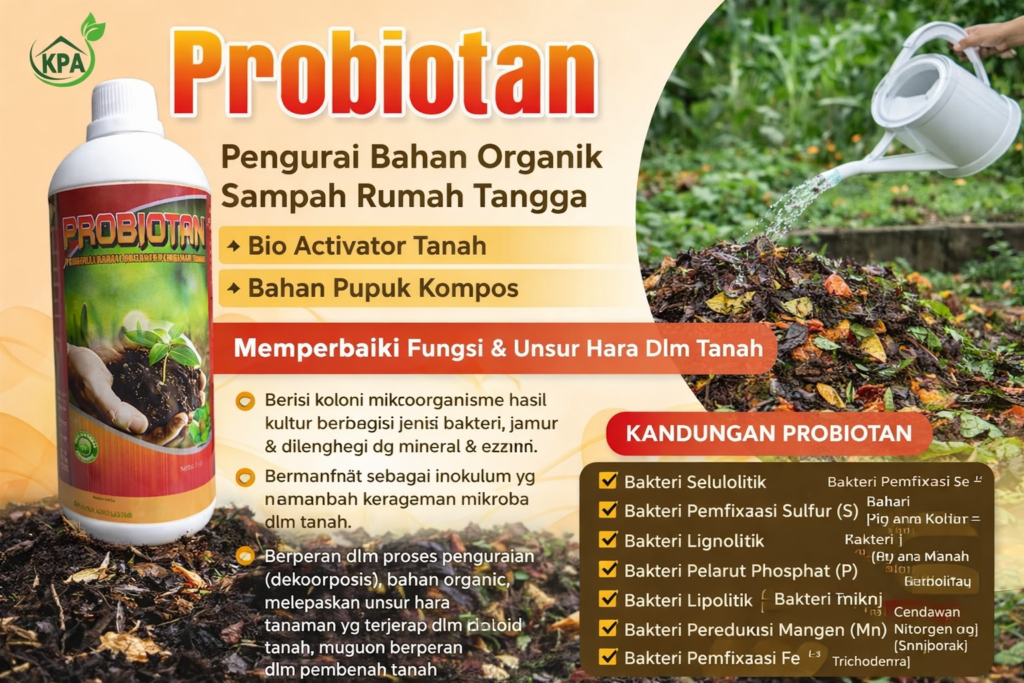Dalam dunia pertanian modern dan pengelolaan limbah rumah tangga, kebutuhan akan solusi alami yang efektif semakin meningkat. Salah satu produk yang kini banyak digunakan adalah Probiotan, yaitu bio aktivator berbasis mikroorganisme yang berfungsi sebagai pengurai bahan organik sekaligus pembenah tanah. Produk ini menjadi pilihan praktis bagi petani, pelaku usaha kompos, hingga rumah tangga yang ingin mengolah sampah organik secara lebih cepat dan ramah lingkungan.